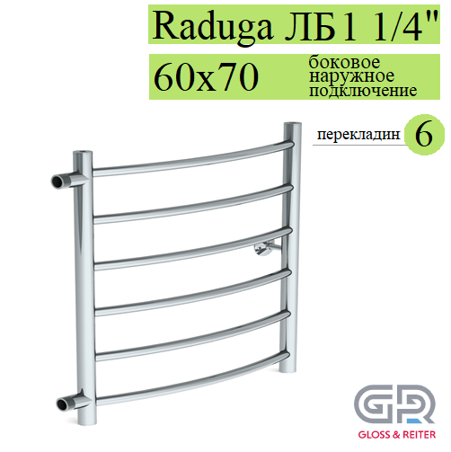 Gloss & Reiter Raduga LeRi ЛБ 60х70 Д6 (42/25)(50) G1 1/4" полотенцесушитель водяной, 6 перекладин, размер 600х700 мм, диаметр ДУ-32, выполняет сразу несколько функций - сушка мокрых полотенец и одежды, помогает избегать повышенной влажности в ванной; обеспечивает стабильную работу системы горячего водоснабжения ("компенсирующая петля"); работает как батарея отопления.
