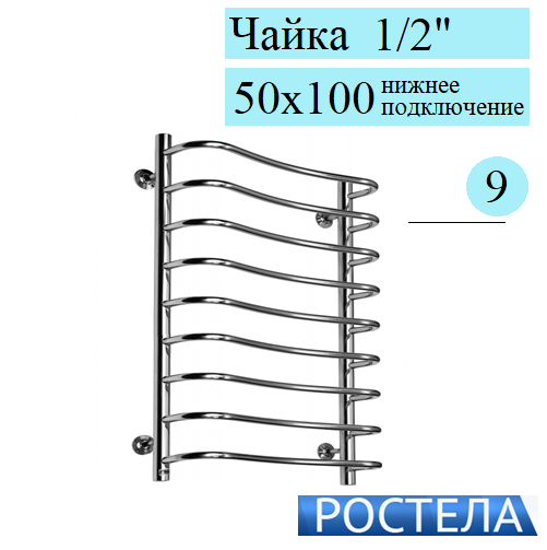 Купить Rostela Чайка 1/2 50x100 полотенцесушитель водяной, 9 перекладин, формы Лесенка в магазине tm24.by, большой ассортимент, доставка, с гарантией от производителя.