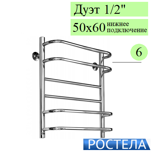 Купить Rostela Дуэт 1/2 50x60 полотенцесушитель водяной, 6 перекладин, формы Лесенка в магазине tm24.by, большой ассортимент, доставка, с гарантией от производителя.