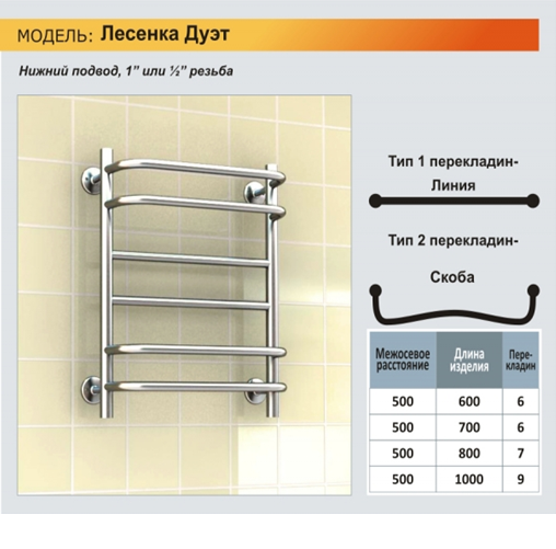 1. Водяной полотенцесушитель Лесенка серии "Дуэт".