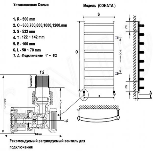 1. Водяной полотенцесушитель Лесенка серии "Соната".