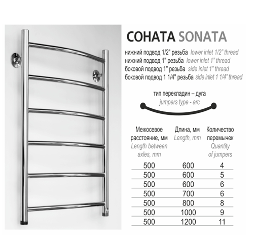 1. Водяной полотенцесушитель Лесенка серии "Соната".