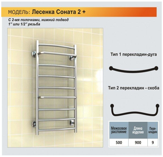 1. Водяной полотенцесушитель Лесенка серии "Соната".