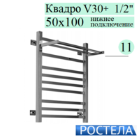 Rostela Соната 4+ 1/2 50x100, 10 перекладин, полотенцесушитель водяной, размер 500х1000 мм, диаметр ДУ-15, выполняет сразу несколько функций - сушка мокрых полотенец и одежды, помогает избегать повышенной влажности в ванной; обеспечивает стабильную работу системы горячего водоснабжения ("компенсирующая петля"); работает как батарея отопления. В комплект входят крепления к стене.