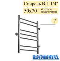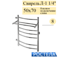 Rostela Свирель Д+ 1 1/4 50x70, 8 дугообразных перекладин, полотенцесушитель водяной, размер 500х700 мм, диаметр ДУ-32, выполняет сразу несколько функций - сушка мокрых полотенец и одежды, помогает избегать повышенной влажности в ванной; обеспечивает стабильную работу системы горячего водоснабжения ("компенсирующая петля"); работает как батарея отопления. В комплект входят крепления к стене.