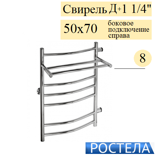 Полотенцесушитель водяной Rostela Свирель Д+ 1 1/4 50x70-8 с полкой боковое подключение справа