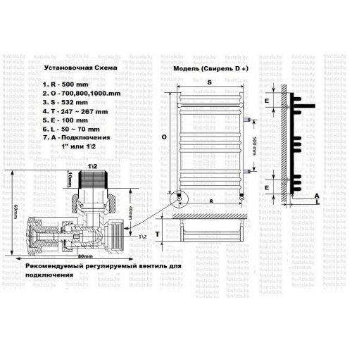 2. Размеры: 500 х 800 мм. Диаметр: 1 1/4" (ДУ-32).