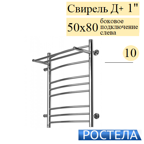 Купить Rostela Свирель Д+ 1 50x80 полотенцесушитель водяной, 10 дугообразных перекладин, формы Лесенка в магазине tm24.by, большой ассортимент, доставка, с гарантией от производителя.