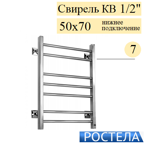 Купить Rostela Свирель КВ 1/2 50x70 полотенцесушитель водяной, 7 перекладин, формы Лесенка в магазине tm24.by, большой ассортимент, доставка, с гарантией от производителя.