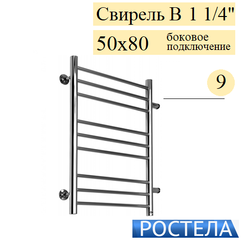 Купить Rostela Свирель В 1 1/4 50x80 полотенцесушитель водяной, 9 прямых перекладин, формы Лесенка в магазине tm24.by, большой ассортимент, доставка, с гарантией от производителя.
