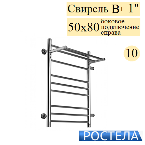 Купить Rostela Свирель В+ 1 50x80 полотенцесушитель водяной, 10 прямых перекладин, формы Лесенка в магазине tm24.by, большой ассортимент, доставка, с гарантией от производителя.