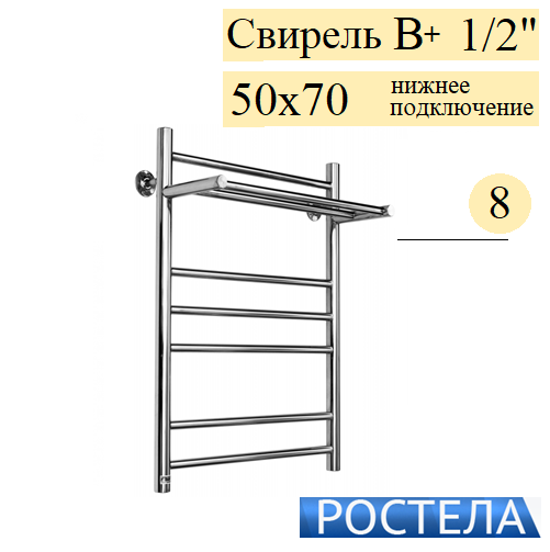Полотенцесушитель водяной Rostela Свирель В+ 1/2 50x70-8 с полкой нижнее подключение