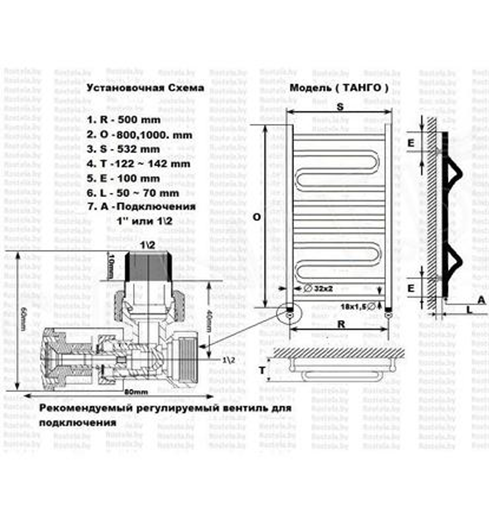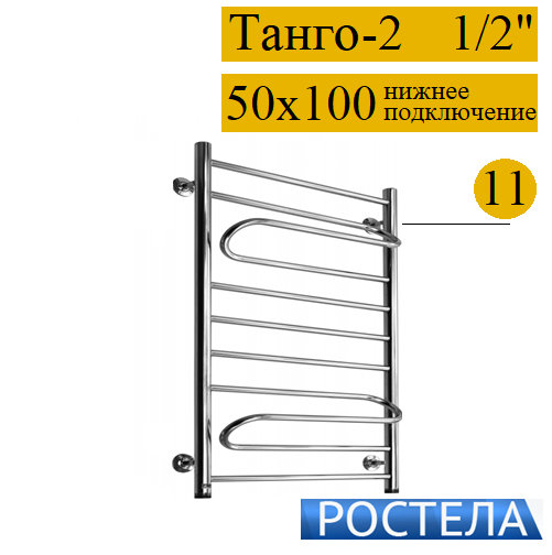 Купить Rostela Танго-2 1/2 50x100 полотенцесушитель водяной, 11 перекладин, формы Лесенка в магазине tm24.by, большой ассортимент, доставка, с гарантией от производителя.