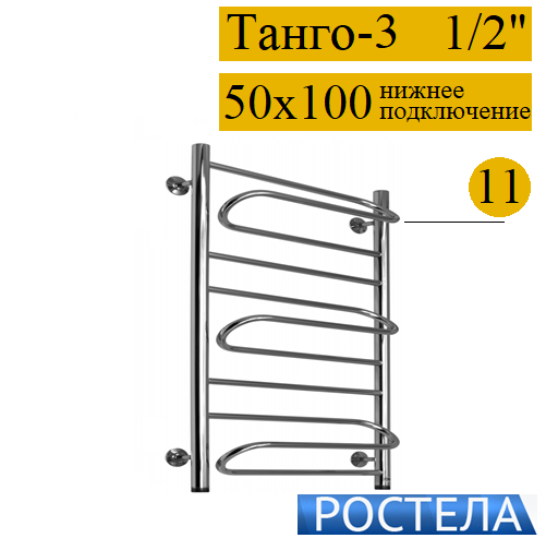 Купить Rostela Танго-3 1/2 50x100 полотенцесушитель водяной, 11 перекладин, формы Лесенка в магазине tm24.by, большой ассортимент, доставка, с гарантией от производителя.