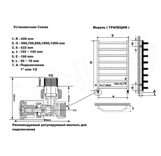 1. Водяной полотенцесушитель Лесенка серии "Трапеция".