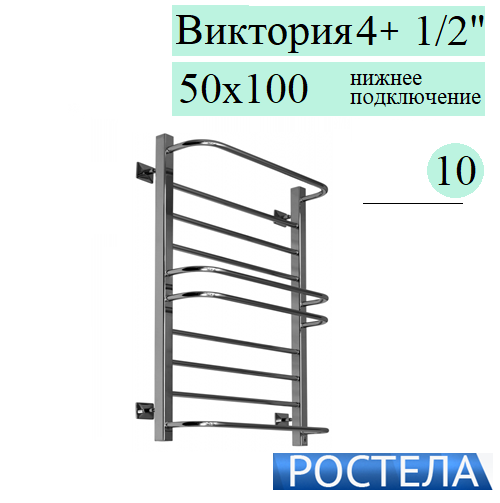 Купить Rostela Виктория 4+ KV 1/2 50x100 полотенцесушитель водяной с полками, 10 перекладин, формы Лесенка в магазине tm24.by, большой ассортимент, доставка, с гарантией от производителя.