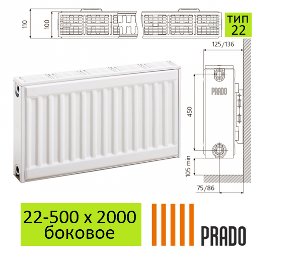 Радиатор стальной панельный Prado Classic 22х500х2000 - это отопительный прибор мощностью 4401 Вт, который служит для отопления жилых, общественных и промышленных зданий с закрытой системой отопления (в такой системе отопления теплоноситель не имеет контакта с атмосферным воздухом).