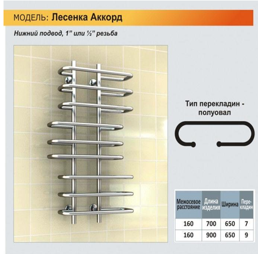 1. Водяной полотенцесушитель Лесенка серии "Аккорд".