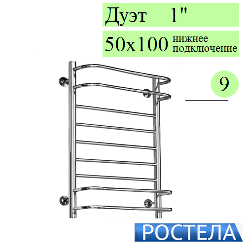 Купить Rostela Дуэт 1 50x100 полотенцесушитель водяной, 9 перекладин, формы Лесенка в магазине tm24.by, большой ассортимент, доставка, с гарантией от производителя.