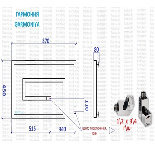 2. Размеры: 480х870 мм. Диаметр: 1/2" (ДУ-15).