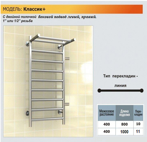 Полотенцесушитель водяной Rostela Классик+ 1 40x100-11 с полкой боковое подключение слева