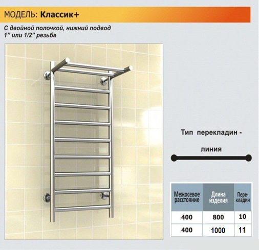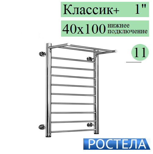 Купить Rostela Классик+ 1 40x100 полотенцесушитель водяной с полкой, 11 перекладин, формы Лесенка в магазине tm24.by, большой ассортимент, доставка, с гарантией от производителя.