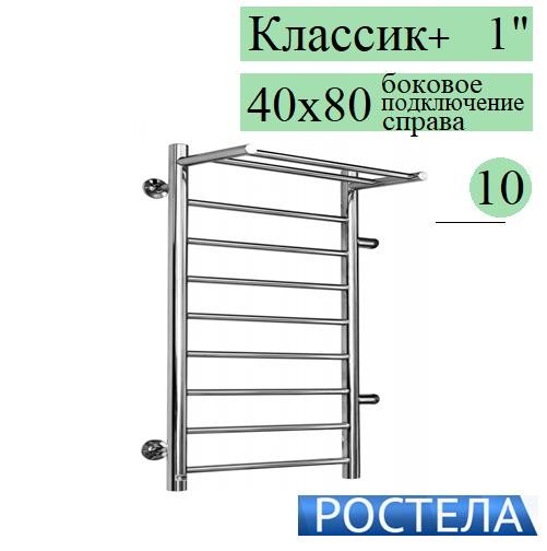 Полотенцесушитель водяной Rostela Классик+ 1 40x80-10 с полкой боковое подключение справа