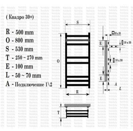 Купить Rostela Квадро V30+ 1/2 40x80 полотенцесушитель водяной, 9 перекладин, формы Лесенка в магазине tm24.by, большой ассортимент, доставка, с гарантией от производителя.