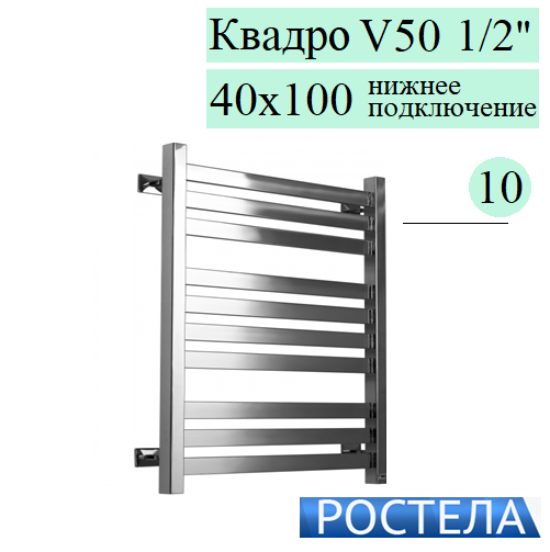 Купить Rostela Квадро V50 1/2 40x100 полотенцесушитель водяной, 10 перекладин, формы Лесенка в магазине tm24.by, большой ассортимент, доставка, с гарантией от производителя.
