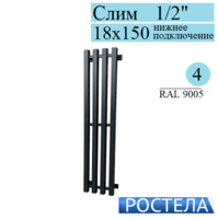 Rostela Слим 1/2 18x150 белого цвета, 4 перекладины, полотенцесушитель водяной, размер 180х1500 мм, диаметр ДУ-15, выполняет сразу несколько функций - сушка мокрых полотенец и одежды, помогает избегать повышенной влажности в ванной; обеспечивает стабильную работу системы горячего водоснабжения ("компенсирующая петля"); работает как батарея отопления. Полотенцесушитель покрыт полимерной порошковой краской RAL 9016 (белый матовый).