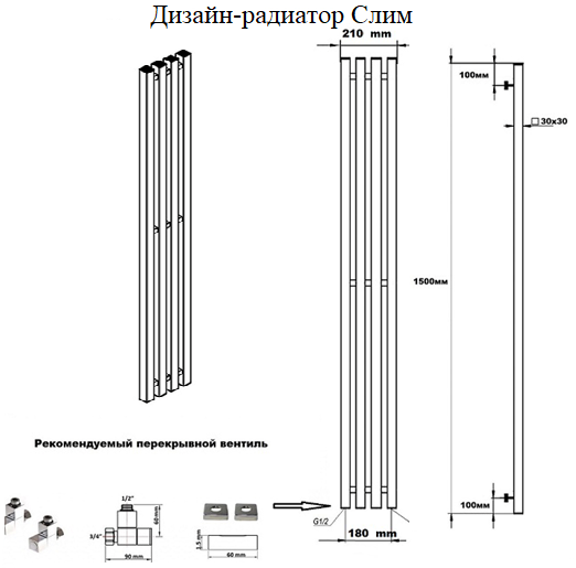 1. Дизайнерский водяной полотенцесушитель серии "Слим".