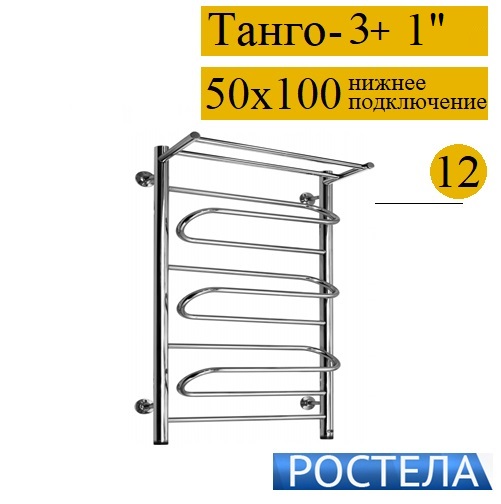 Купить Rostela Танго 3+ 1 50x100 полотенцесушитель водяной с полкой, 12 перекладин, формы Лесенка в магазине tm24.by, большой ассортимент, доставка, с гарантией от производителя.