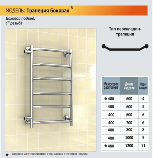 1. Водяной полотенцесушитель Лесенка серии "Трапеция".
