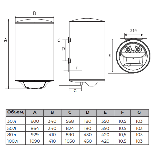 1. Объём водонагревателя: 80 литров.
