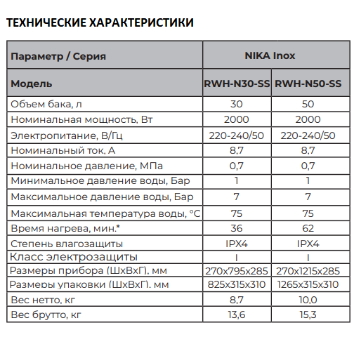 Паспорт. Водонагреватель Royal Clima Nika Inox.