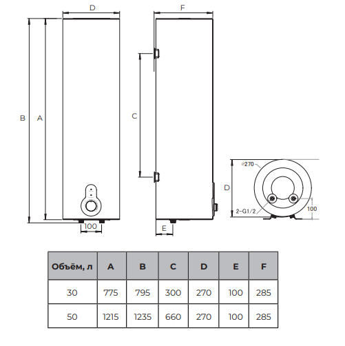 1. Объём водонагревателя: 50 литров.