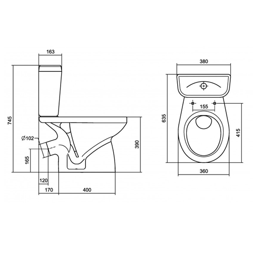 2. Форма унитаза: овальная.
