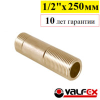 Сгон Valfex 1/2х250 мм латунь с никелевым покрытием VF.653.N.012.250, резьбовой фитинг, служит для герметичного соединения двух участков водопроводных или отопительных труб.