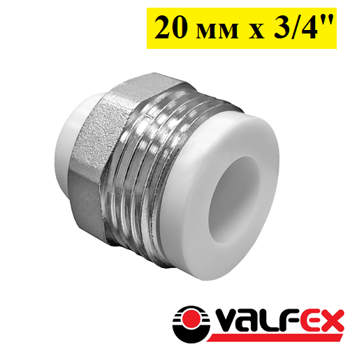 Штуцер с наружной резьбой Valfex 20 мм х 3/4. Белый