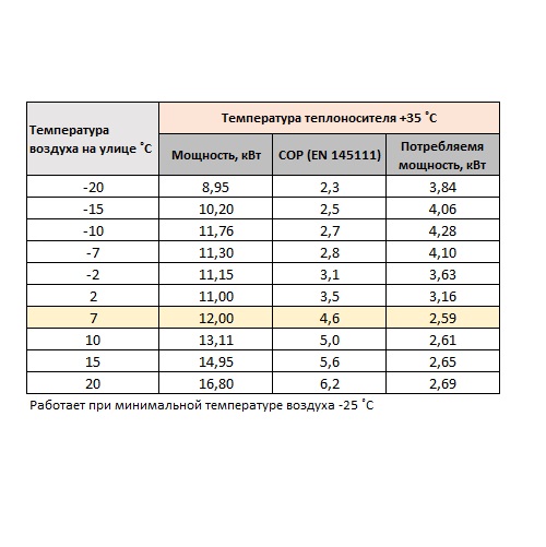 | Мощность (при A7/W35): | 12 кВт |