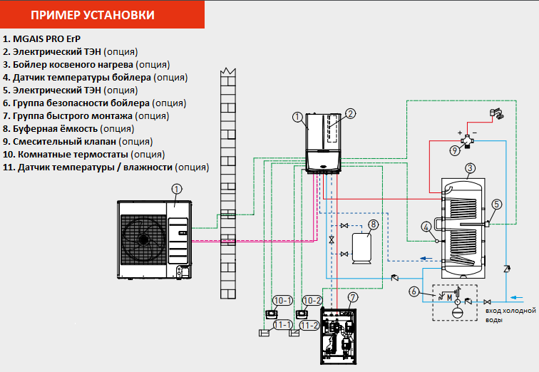 Водяной контур (гидравлическая группа) полностью защищен от мороза, потому что он будет расположен внутри дома; MAGIS PRO ErP - идеальное приложение для особо холодных мест.