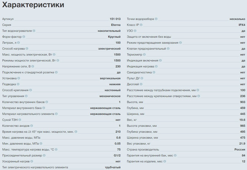 1. Водонагреватель Thermex Eterna 100 V сделан в России.