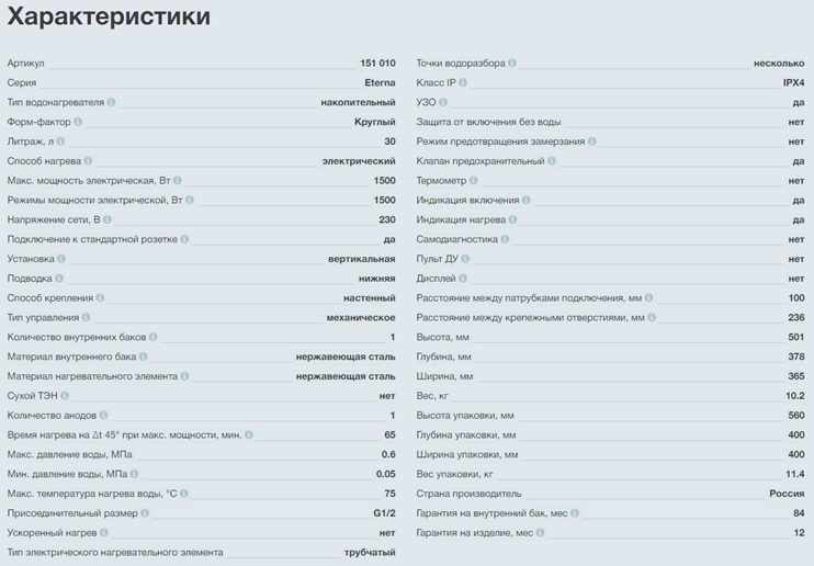 1. Водонагреватель Thermex Eterna 30 V Slim сделан в России.