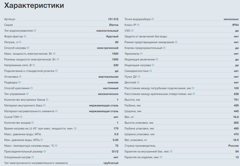 1. Водонагреватель Thermex Eterna 80 V сделан в России.