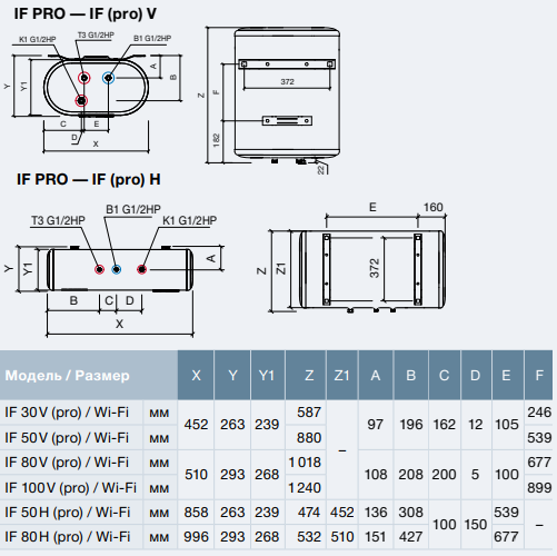 IF 50 H (pro) Wi-Fi имеет внутренний бак G.5 из нержавеющей стали, который обеспечивает длительную работу водонагревателя. 4 запрограммированных режима нагрева решают любую поставленную задачу: ускоренный, стандартный, экономичный, режим защиты от замерзания NO FROST.
