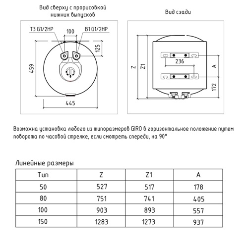 Thermex Giro 100 водонагреватель электрический, является классической круглой моделью объёмом 100 литров, мощность 1500 Вт. Отличительной особенностью серии Giro является возможность установки водонагревателя, как в горизонтальном, так и в вертикальном положениях.