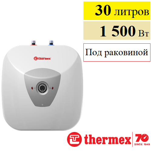 Thermex H 30 U pro водонагреватель электрический объёмом 30 литров и установкой под раковиной. Мощность водонагревателя 1500 Вт, время нагрева 65 минут.