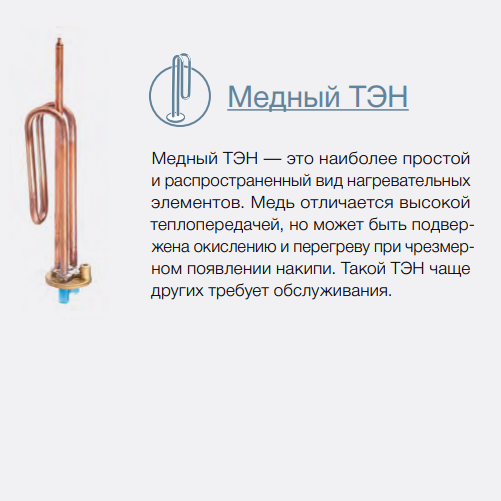 3. Мощность: 2000 Вт. ТЭН (мокрый тип) из меди.