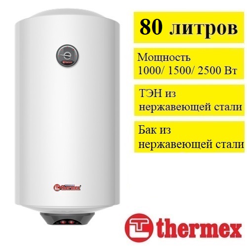 Водонагреватель Thermex Praktik 80 V купить в магазине tm24.by с доставкой. Бак объём 80 литров сделан из нержавеющей стали. Три режима нагрева - 1500 Вт стандартный, 2500 Вт ускоренный и 1000 Вт экономичный, что помогает настроить водонагреватель под индивидуальные условия эксплуатации.