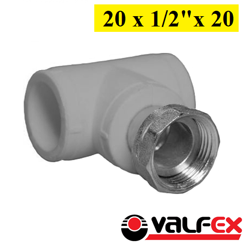 Тройник комбинированный с накидной гайкой Valfex 20 х 1/2 х 20. Серый